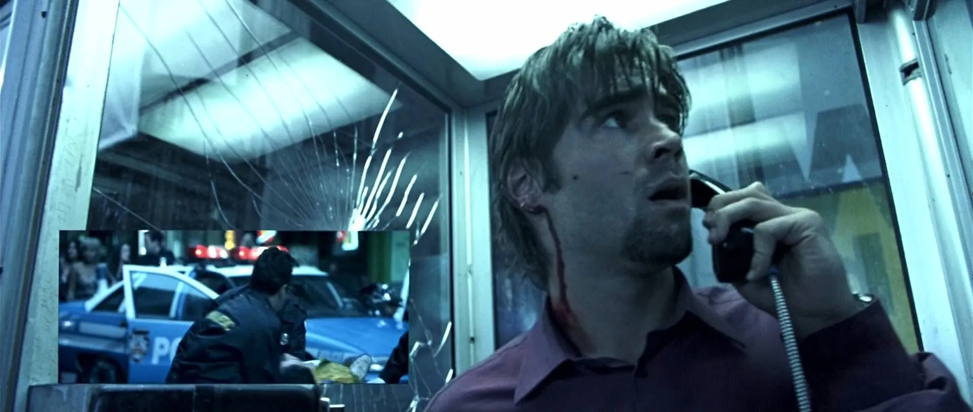 Cast: Colin Farrell as Stu Shepard, Kiefer Sutherland as The Caller, Forest Whitaker as Captain Ramey, Radha Mitchell as Kelly Shepard, Katie Holmes as Pamela McFadden, Paula Jai Parker as Felicia, Arian Ash as Corky, Tia Texada as Asia, John Enos III as Leon, Richard T. Jones as Sergeant Cole, Keith Nobbs as Adam, Dell Yount as Pizza Guy, James MacDonald as Negotiator, Josh Pais as Mario, Yorgo Constantine as ESU Commander, Colin Patrick Lynch as ESU Technician, Troy Gilbert as ESU Sniper, Seth William Meier as Officer McDuff, Svetlana Efremova as Erica, Billy Erb as Lars, Domenick Lombardozzi as Wyatt, Maile Flanagan as Lana, Tom Reynolds as Richard, Julio Oscar Mechoso as Hispanic Medic, Karara Muhoro as Nigerian Vendor, Zidu Chen as Korean Husband, Shu Lan Tuan as Korean Wife, Dean Cochran as Reporter #1, Amy Kowallis as Reporter #2, Tory Kittles as Reporter #3, Bruce Roberts as Reporter #4, Tyree Michael Simpson as Doorman, Dean Tarrolly as Newscaster, Mary Randle as Dispatcher, Paul Fontana as Dispatcher, Steve Alterman as (voice), Kimberly Bailey as (voice), Jason Broad as (voice), Lanei Chapman as (voice), Django Craig as (voice), Judith Durand as (voice), Greg Finley as (voice), Ramón Franco as (voice), Anneliese Goldman as (voice), Rick Gonzales as (voice), Tracy Metro as (voice), Jason Pace as (voice), Juan Pope as (voice), Nicole Prescott as (voice), Cheryl Tyre Smith as (voice), John Vargas as (voice), Tanya Vidal as (voice), Billy 'Sly' Williams as (voice), Ruth Zalduondo as (voice), Ben Foster as Big Q (uncredited), Jared Leto as Bobby (uncredited)